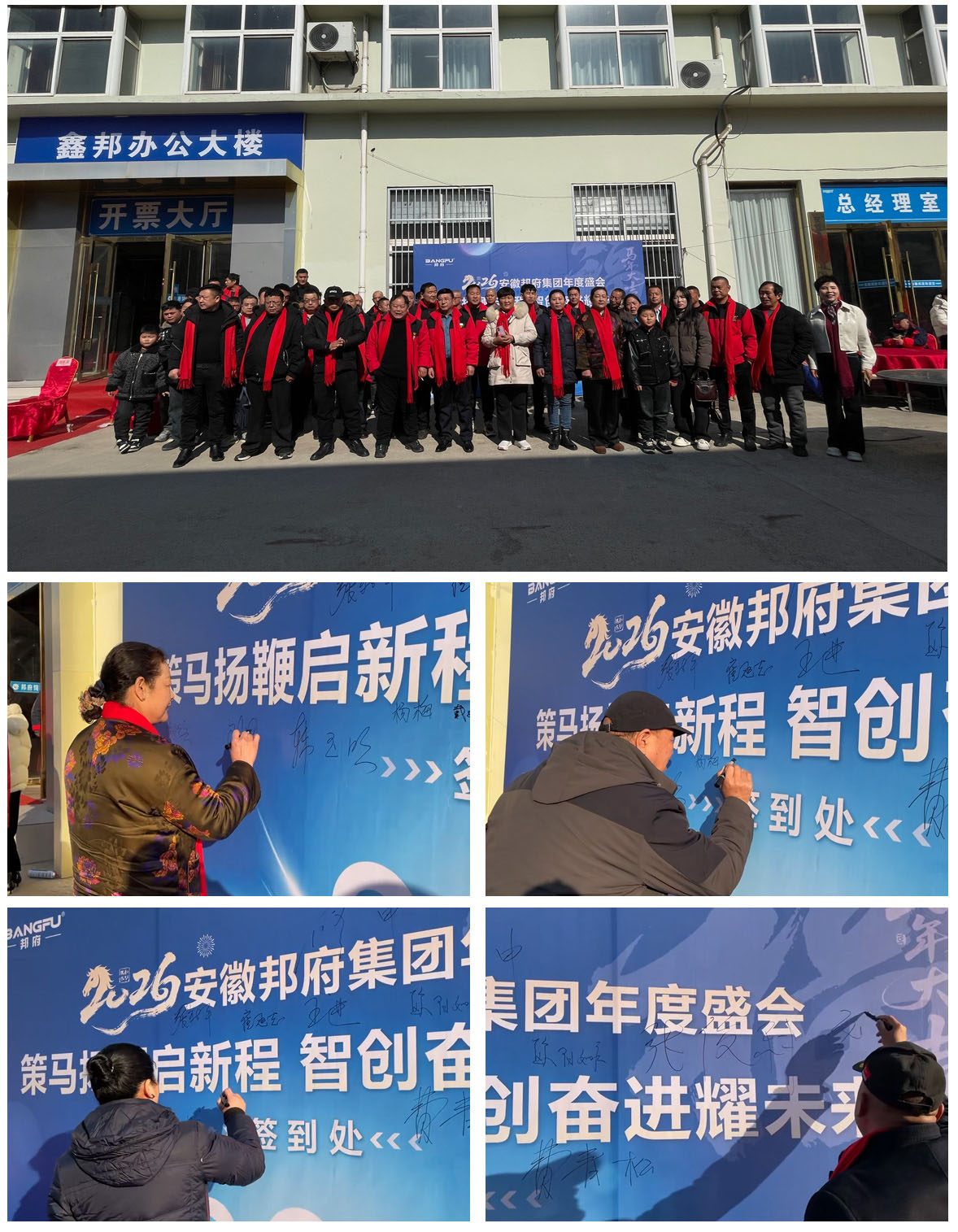 盛会启幕,共赴新篇。2026年2月8日,安徽邦府集团2026年度盛会正式拉开帷幕。活动现场布置精美、氛围热烈,公司全体工作人员精神饱满、笑容昂扬,满怀热忱地迎接每一位来自五湖四海的嘉宾与伙伴。签到处前,大家有序驻足、签名留影,一笔一划镌刻下同心同行的印记,一句一言传递着携手共进的期许,整个会场都浸润在喜悦、激动与期盼的浓厚氛围之中。