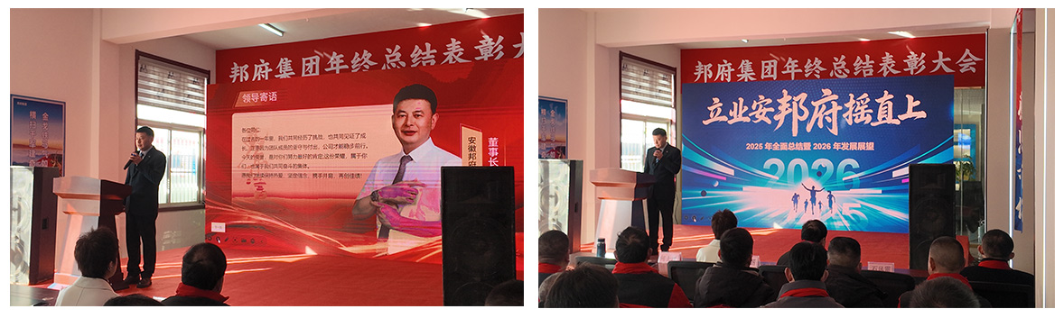 展望2026年,机遇与挑战并存,改革与发展同步。何士洋董事长指出,新的一年,集团将持续严把原料品控关,新增生产线、深耕核心技术,不断提升产品竞争力,让邦府产品在市场中更具优势、更有底气。最后,董事长明确提出2026年的发展要求与丰厚奖励政策,激励全体邦府人及合作伙伴们,以全新的姿态、昂扬的斗志,开启新征程、迎接新挑战、实现新突破。